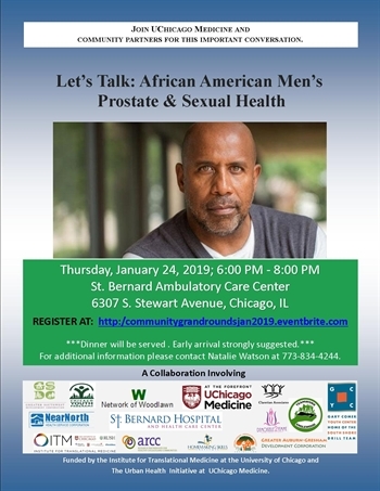 The January 24, 2019 Community Grand Rounds will focus on the topic of African American male's prostate and sexual health.