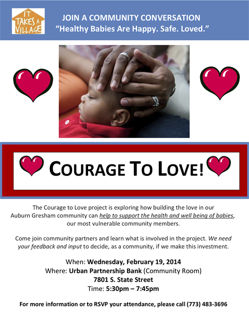 The Courage to Love project is exploring how building the love in our Auburn Gresham community can help to support the health and well being of babies, our most vulnerable community members.