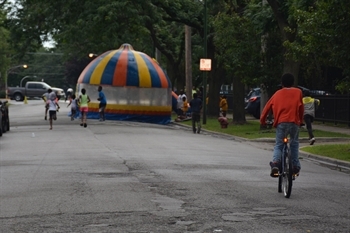 Mr. Wynn met us there with his bouncy-house-owning friend and even as the bouncy house was starting to blow up, 45 minutes before the event was scheduled to start, kids from the block started streaming out. They spun hula hoops, bumped a volley ball back and forth and waited in eager anticipation for the bouncy house to be ready. A young man named Maurice and I threw a football back and forth for more than an hour, chatting about our lives, our interests and Chicago sports.