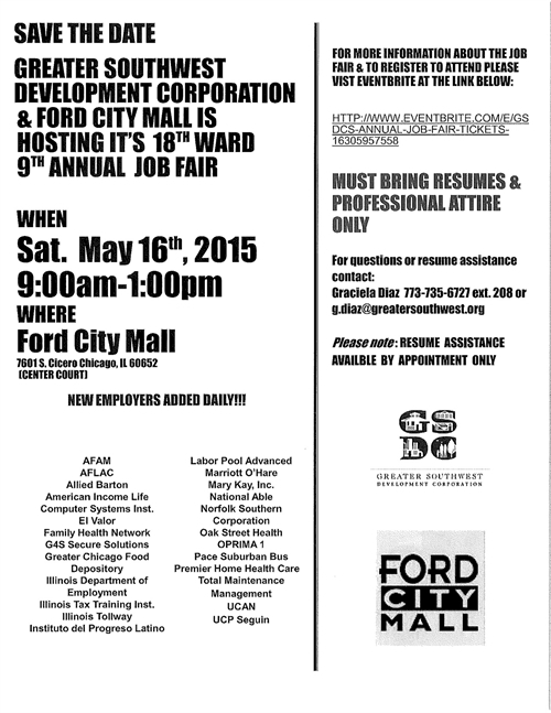 Greater Southwest Development Corporation & Ford City Mall Hosts 18th Ward 9th Annual Job Fair