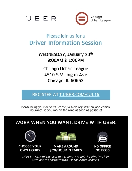 UBER Driver Information Sessions, Jan. 20th, 9am and 1pm, At Chicago Urban League