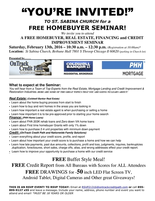 Free Homebuyer Seminar! February 13, 2016 -- 10:30 a.m. -- 12:30 p.m. (Registration at 10:00 a.m.)*