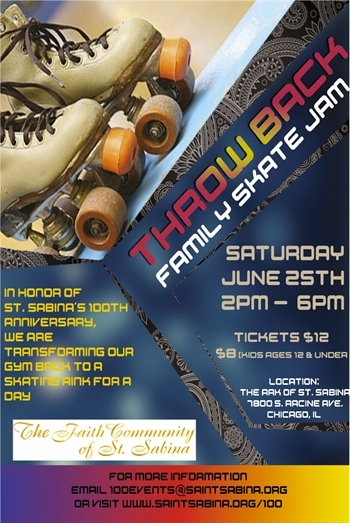 In honor of St. Sabina's 100th Anniversary, the gym is being transformed back to a skating rink, for the day! Saturday, June 25, 2016, at The Ark of St. Sabina, 7800 S. Racine, Tickets $12, $8 (12 and under). For more information email 100EVENT@SAINTSABINA.ORG. See you there!
