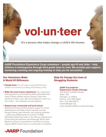 AARP Foundation Experience Corp is looking for our Seniors who are 50 years and older ( preferably retired) that can volunteer time to tutor small groups of children.