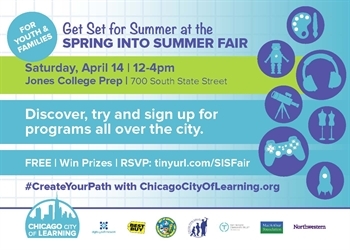 The event will take place from 12pm-4pm on Saturday, April 14th at Jones College Prep, and will feature activities geared toward youth (ages 4 – 24) that offer a glimpse at just some of the opportunities available throughout the summer.
