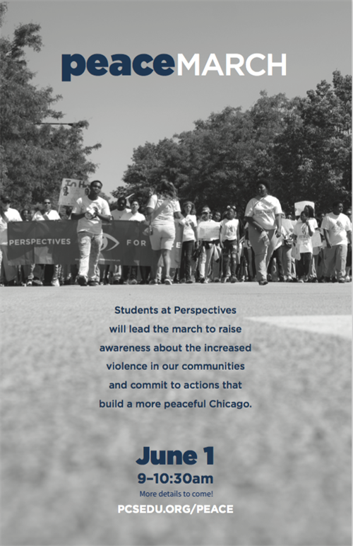 Students at Perspectives will lead the march to raise awareness about the increased violence in Chicago's communities and commit to actions that build a more peaceful Chicago.