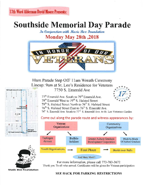 Join 17th Ward Alderman Dave Moore, many youth groups, community based organizations and government officials, to honor Greater Auburn Gresham women and men veterans and their families.