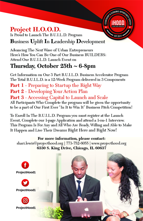 Project H.O.O.D is proud to launch the 3-part BUILD business accelerator program. See details below.