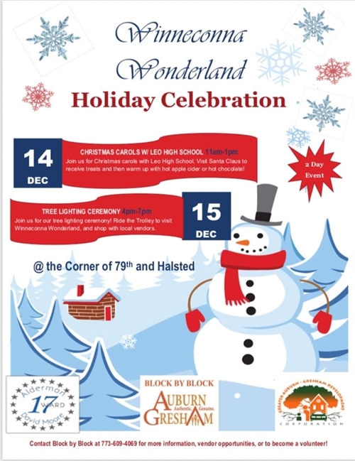 The Auburn Gresham community holiday celebration returns, on the grounds of the passive park, corner of 79th Halsted, this coming Friday, December 14th. A treat for schools and family. from, 11a-1p, caroling with Leo Catholic High School.