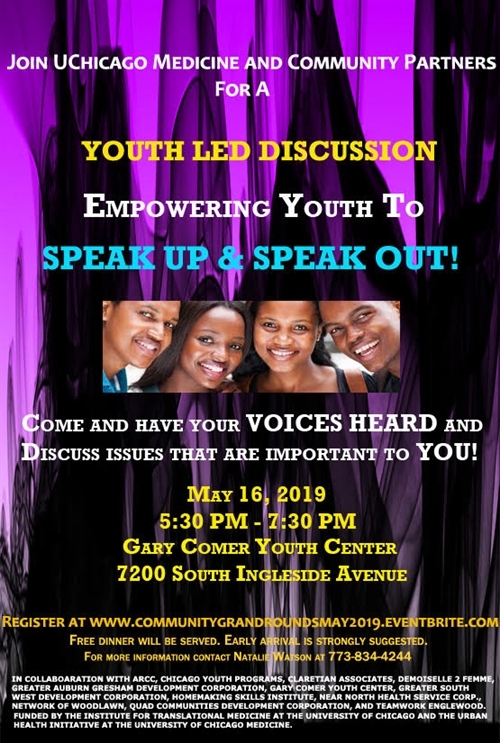 Join UChicago Medicine and Community Partners for a youth led discussion, "Empowering Youth to Speak Up and Speak Out"!