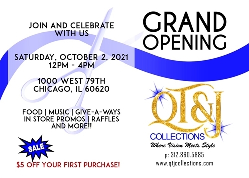 A new business is opening in Auburn Gresham! Come celebrate the Grand Opeoing of QT&J Collections, 1000 West 79th Streete, from 12pm - 4pm.