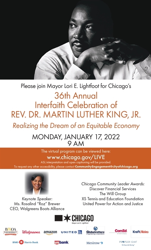 We will now stream this event on MONDAY, JANUARY 17 at 9:00 am. You will be able to watch at www.chicago.gov/LIVE.