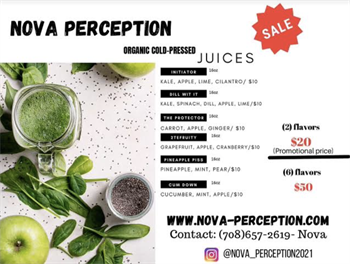 We will also be featuring samples of cold-pressed juices from Traci @ https://nova-perception.com/ who will have her complete line of juices available.