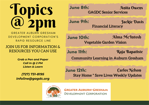 The latest topics for GAGDC's Rapid Resource Information Line (RRIL), call in everyday to 1-727-731-8195, from 1:55pm - 2:15pm, to hear 5-10 minutes of key topics to keep you connnected.