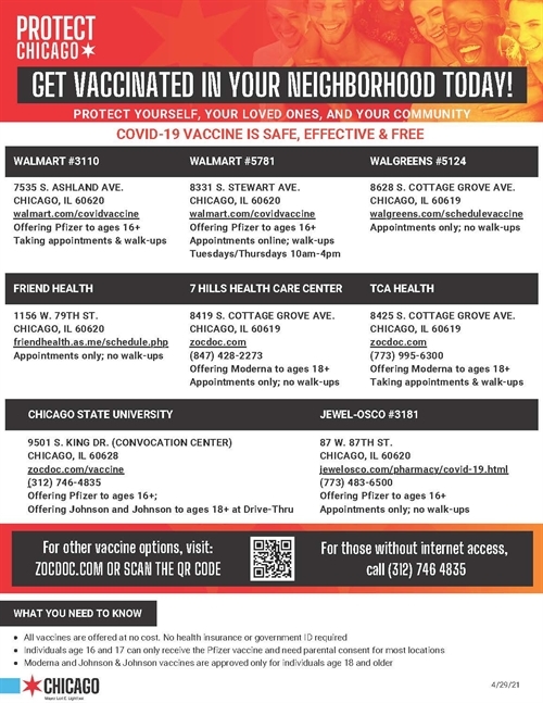 Auburn Gresham, Chicagoans, get vaccinated to help protect against Coronavirus (COVID-19). #ProtectChicago #SaveLives #VaxChiNow #WearYourMask #WashYourHands