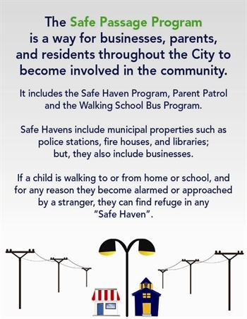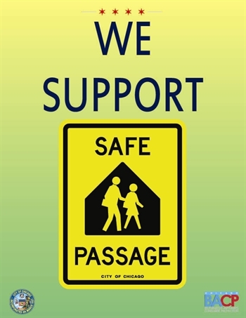 Please reach out to the businesses within your respective corridors and encourage them to show their support for the Safety of all kids/youth attending schools, by posting in their businesses these signs of the Safe Passage Program. This is a wonderful way for businesses, parents, and residents throughout the City to become involve in the community.