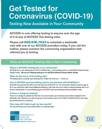 ACCESS Community Health Network is now offering free COVID testing for anyone 2 years old and up. They also are offering back to school physicals and flu shots.