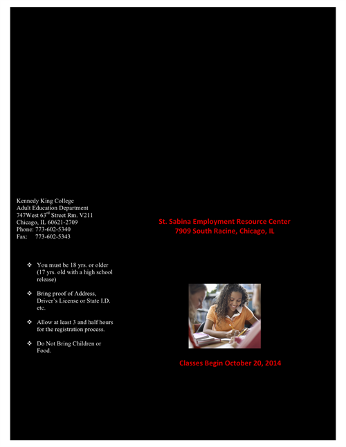 Free GED Classes, sponsored by St. Sabina Employment Resources Center