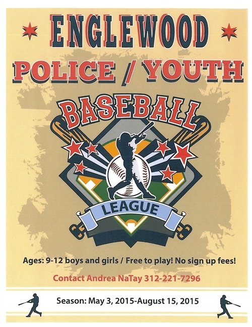A new Englewood Police / Youth Baseball League for ages 9-12 boys and girls / Free to play! No sign up fees! Season: May 3, 2015-August 15, 2015. Deadline to sign-up is April 25th!